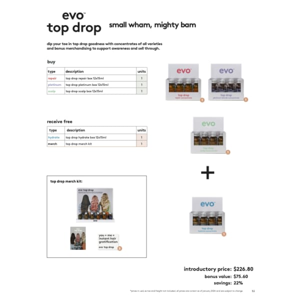 199801 | 199801 evo top drop taster box 8pk (2 of each flavour) | Login to see prices | 0 | Available |